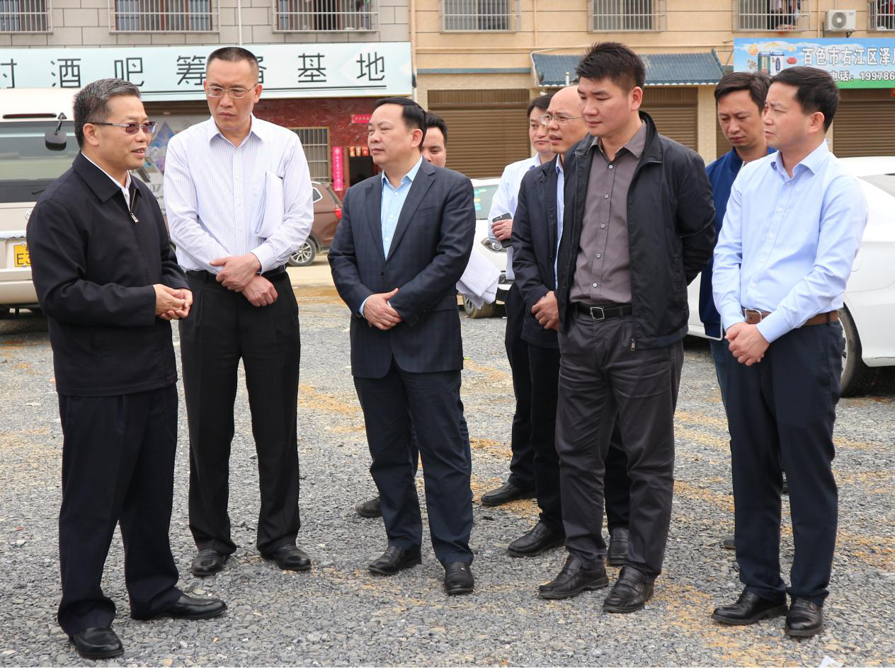 ??? 自治區(qū)政協副主席、百色市委書記、百色市人大常委會主任彭曉春一行到公司負責的棚戶區(qū)改造項目檢查工作進展情況,百色市委秘書長藍樹東、右江區(qū)委書記黃永才、公司經營管理指導工作小組組長李勇春等領導陪同。?(通訊員:金彥彤)