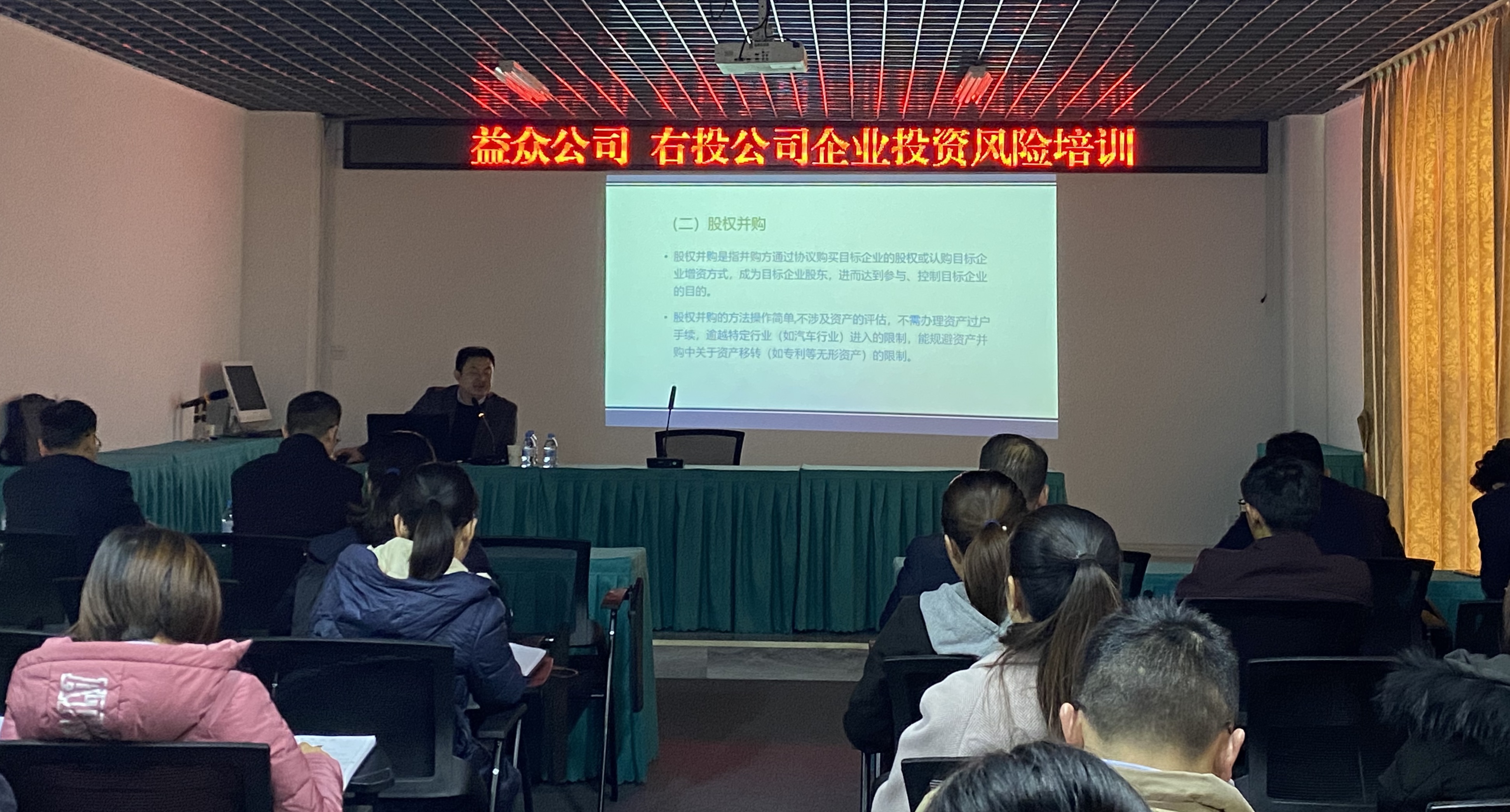 ????????為讓公司管理人員熟悉掌握企業(yè)投資風(fēng)險防控和新發(fā)布的《民法典》有關(guān)知識,提高公司投資風(fēng)險防控的實操能力,降低企業(yè)法律風(fēng)險,近日,益眾公司在老鄉(xiāng)家園辦公區(qū)(益眾·尚城商業(yè)樓B1#三樓)會議室舉辦企業(yè)投資風(fēng)險培訓(xùn)。培訓(xùn)邀請廣西同望律師事務(wù)所陸譽中律師主講,公司各部門、子公司負責(zé)人及有關(guān)人員約40多人參加培訓(xùn)。