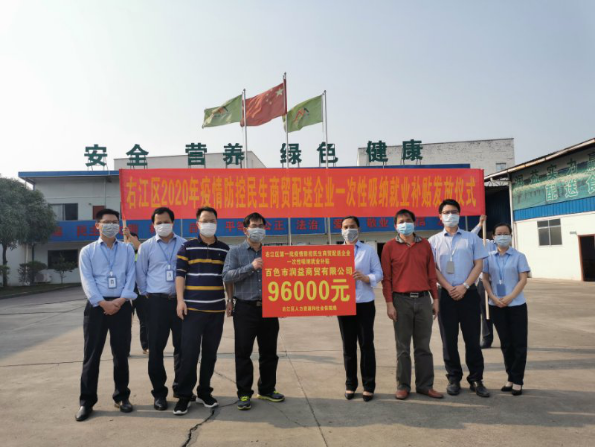 潤(rùn)商貿(mào)公司獲得右江區(qū)2020年疫情防控民生商貿(mào)配送企業(yè)