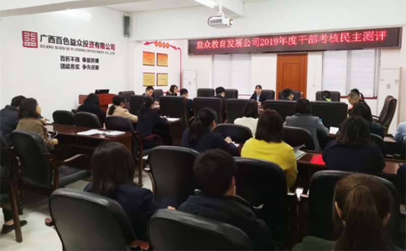2019年12月31日,益眾教育公司召開(kāi)2019年度干部民主測(cè)評(píng)考核會(huì)議,對(duì)益眾托管公司、益眾后勤公司主管以上干部進(jìn)行年度考核民主測(cè)評(píng),公司全體管理人員參加會(huì)議。會(huì)議強(qiáng)調(diào)了開(kāi)展干部民主測(cè)評(píng)考核工作的重要性,要求客觀(guān)公正的對(duì)測(cè)評(píng)對(duì)象的德、能、勤、績(jī)、廉等方面進(jìn)行據(jù)實(shí)評(píng)價(jià),嚴(yán)格遵守考核紀(jì)律,營(yíng)造風(fēng)清氣正的考核工作環(huán)境。