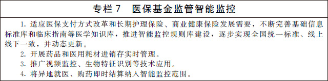 ——建設(shè)智慧醫(yī)保。醫(yī)療保障信息化水平顯著提升,全國統(tǒng)一的醫(yī)療保障信息平臺全面建成,“互聯(lián)網(wǎng)+醫(yī)療健康”醫(yī)保服務(wù)不斷完善,醫(yī)保大數(shù)據(jù)和智能監(jiān)控全面應(yīng)用,醫(yī)保電子憑證普遍推廣,就醫(yī)結(jié)算更加便捷。
