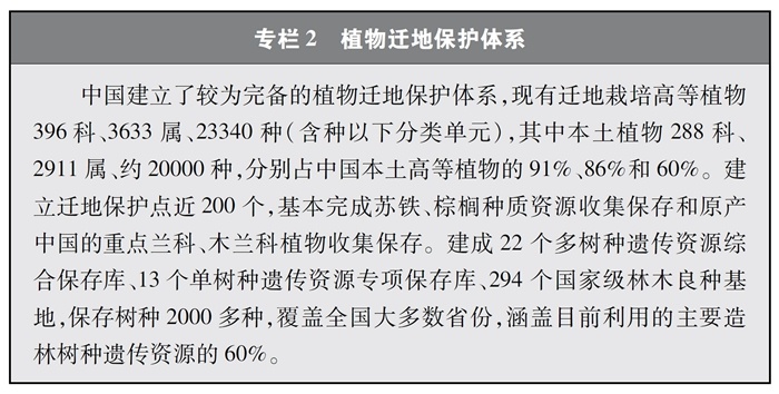 中國持續(xù)加大遷地保護力度,系統(tǒng)實施瀕危物種拯救工程,生物遺傳資源的收集保存水平顯著提高,遷地保護體系日趨完善,成為就地保護的有效補充,多種瀕危野生動植物得到保護和恢復。
