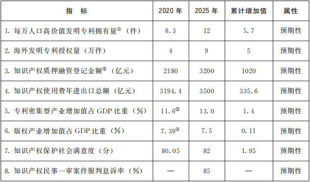 “十四五”時(shí)期知識(shí)產(chǎn)權(quán)發(fā)展主要指標(biāo)