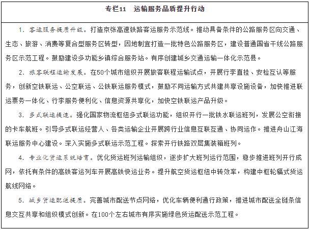 設(shè)施網(wǎng)絡(luò)更加完善。國家綜合立體交通網(wǎng)主骨架能力利用率顯著提高。以“八縱八橫”高速鐵路主通道為主骨架,以高速鐵路區(qū)域連接線銜接,以部分兼顧干線功能的城際鐵路為補充,主要采用250公里及以上時速標準的高速鐵路網(wǎng)對50萬人口以上城市覆蓋率達到95%以上,普速鐵路瓶頸路段基本消除。7條首都放射線、11條北南縱線、18條東西橫線,以及地區(qū)環(huán)線、并行線、聯(lián)絡(luò)線等組成的國家高速公路網(wǎng)的主線基本貫通,普通公路質(zhì)量進一步提高。布局完善、功能完備的現(xiàn)代化機場體系基本形成。港口碼頭專業(yè)化、現(xiàn)代化水平顯著提升,內(nèi)河高等級航道網(wǎng)絡(luò)建設(shè)取得重要進展。綜合交通樞紐換乘換裝效率進一步提高。重點城市群一體化交通網(wǎng)絡(luò)、都市圈1小時通勤網(wǎng)加快形成,沿邊國道基本貫通。